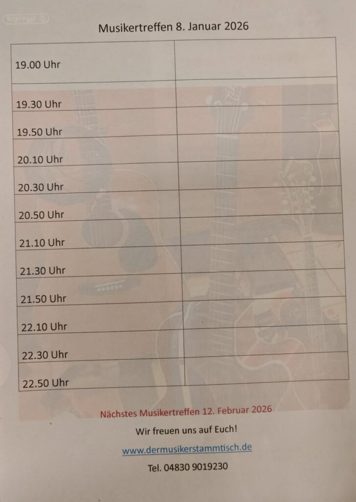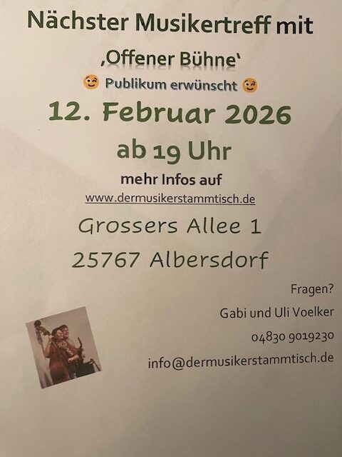 Habt Ihr weitere Fragen? Telefonisch erreicht Ihr uns unter 04830 9019230 oder per Mail unter info@dermusikerstammtisch.de.